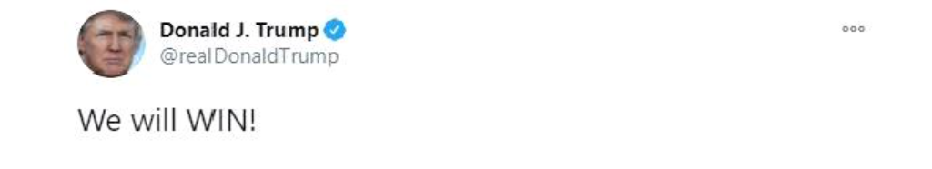 Amerika Birleşik Devletleri (ABD) Başkanı Donald Trump sosyal medya hesabı üzerinden yaptığı açıklamada, "Biz kazanacağız. Yüzbinlerce kişi DC'de (Washington) desteklerini gösteriyor" dedi.