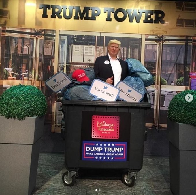 Almanya'da bulunan ‘Madame Tussauds’ adındaki balmumu heykel müzesi, ABD Başkanı Donald Trump'ın heykelini çöpe attı.