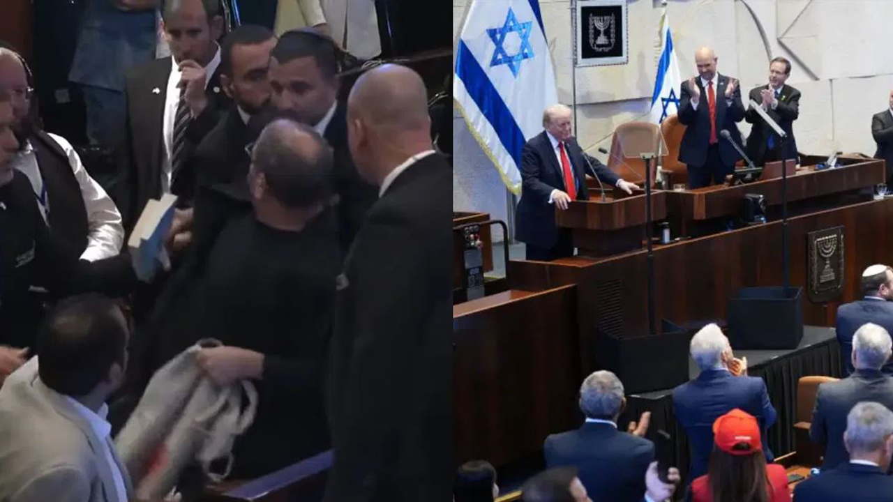 İsrail Meclisi’nde konuşan ve Netanyahu’ya teşekkürler eden Trump'a yönelik 'Filistin'i tanı' protestoyu gerçekleştiren kişinin, Filistin asıllı İsrail Meclisi (Knesset) üyesi Ayman Odeh ve Ofer Cassif olduğu ortaya çıktı.