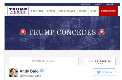 ABD'de başkanlık seçimleri sonuçlandı. Donad J. Trump 45. ABD başkanı seçildi. Bu sonuç birçok kişiyi hem şaşırttı. Fakat bazıları bu seçimi çok da ciddiye almadı. Özellikle de, Trump'ın sitesini hackleyen saldırganlar!