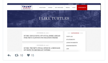 Bir grup hacker, seçim sırasında Donald Trump'ın sitesinde açık buldu. Çok basit bir şekilde istedikleri yazıyı sayfanın üst kısmına yazan hackerlar, ziyaretçilere komik anlar yaşattılar.