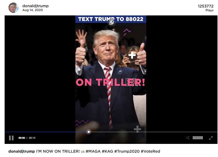 'donaldjtrump' kullanıcı adıyla açılan hesapta paylaşın bir videoda 1 milyon 260 bin civarında izleyiciye ulaştı.