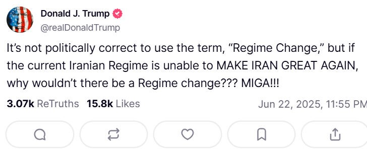 "Rejim Değişikliği" terimini kullanmak politik olarak doğru değil, ancak mevcut İran Rejimi İRAN'I TEKRAR BÜYÜK YAPAMIYORSA, neden bir rejim değişikliği olmasın?