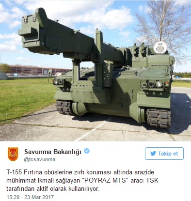 Milli Savunma Bakanlığı, Twitter'dan Poyraz Mühimmat Transfer Sistemi ile ilgili olarak bir paylaşımda bulundu.