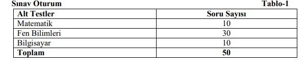 Yetenek Sınavında Tablo-1’de belirtilen alanlardan soruların yer aldığı testler uygulanacaktır. Sınavda her alan için öğrencinin yorumlama, sonuç çıkarma, problem çözme, analiz yapma, eleştirel düşünme, bilimsel süreç ve benzeri becerilerini ölçecek nitelikte sorular yer alacaktır.