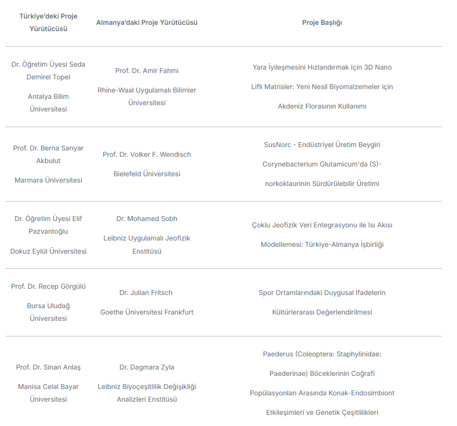 2531 TÜBİTAK - Alman Akademik Değişim Servisi ikili iş birliği programı sonuçları açıklandı. Yapılan değerlendirme sonrası iki ülke arasında yürütülecek 9 ortak projenin desteklenmesine karar verildi.