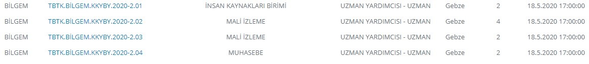 Türkiye Bilimsel ve Teknolojik Araştırma Kurumunun (TÜBİTAK) Resmi Gazete'de yayımlanan ilanına göre, söz konusu personel Bilişim ve Bilgi Güvenliği İleri Teknolojiler Araştırma Merkezine (BİLGEM) bağlı Kurumsal Kaynak Yönetimi Başkan Yardımcılığı kadrosunda Kocaeli'de görev yapacak. İstihdam edilecek 10 personel, uzman yardımcısı ve uzman olarak görevlendirilecek.
