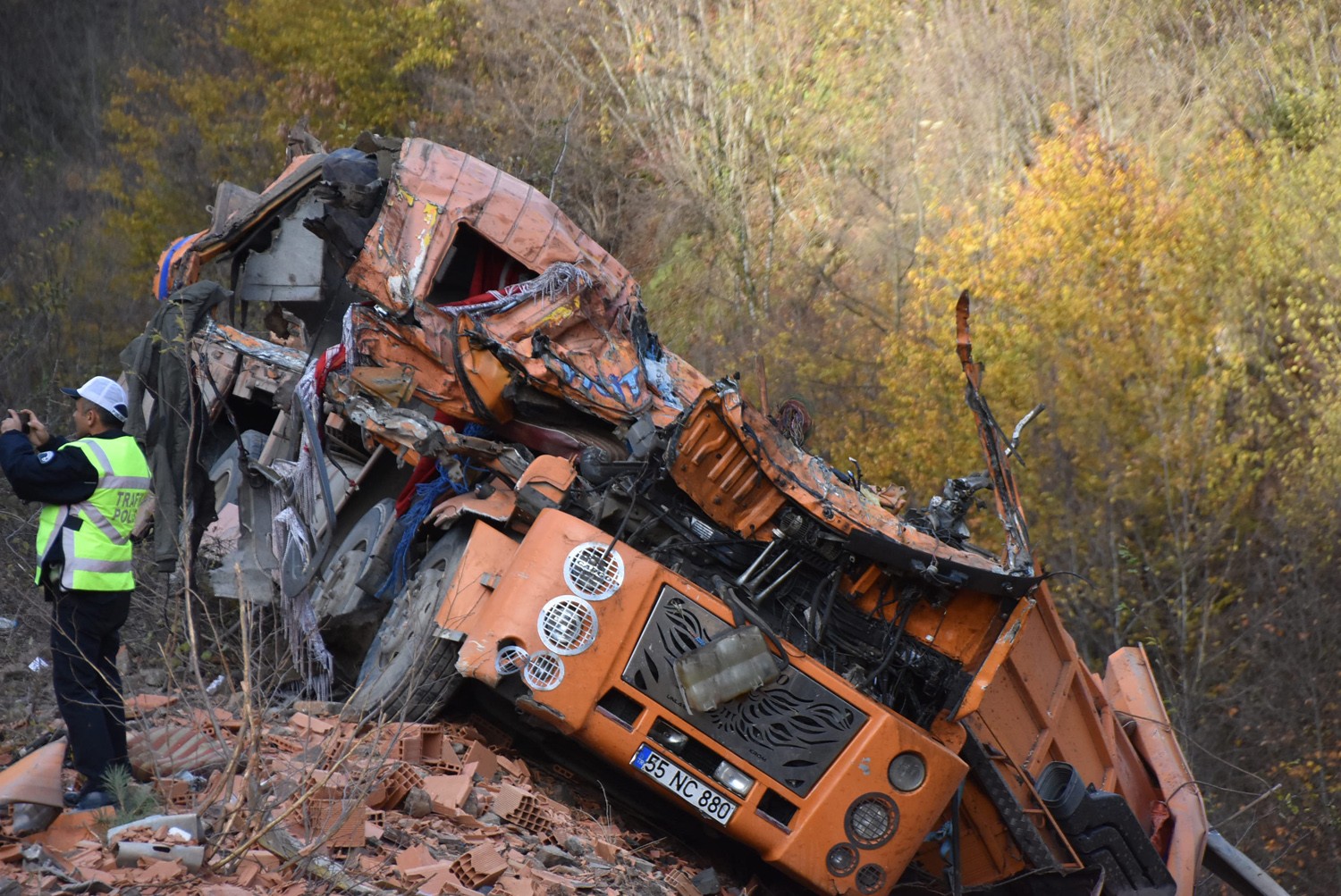 Sinop'ta tuğla yüklü kamyon sürücüsünün direksiyon hakimiyetini kaybetmesi sonucu yolun kenarlarındaki bariyerleri 100 metre parçaladıktan sonra şarampole yuvarlandı. Kazada 2 kişi hayatını kaybederken, 1 kişi de yaralandı.