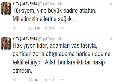 Başbakan Yardımcısı Tuğrul Türkeş, resmi twitter hesabından 1 Kasım seçimi sonrasında sert mesajlarda bulundu.Türkeş, twitter hesabından bunları yazdı;