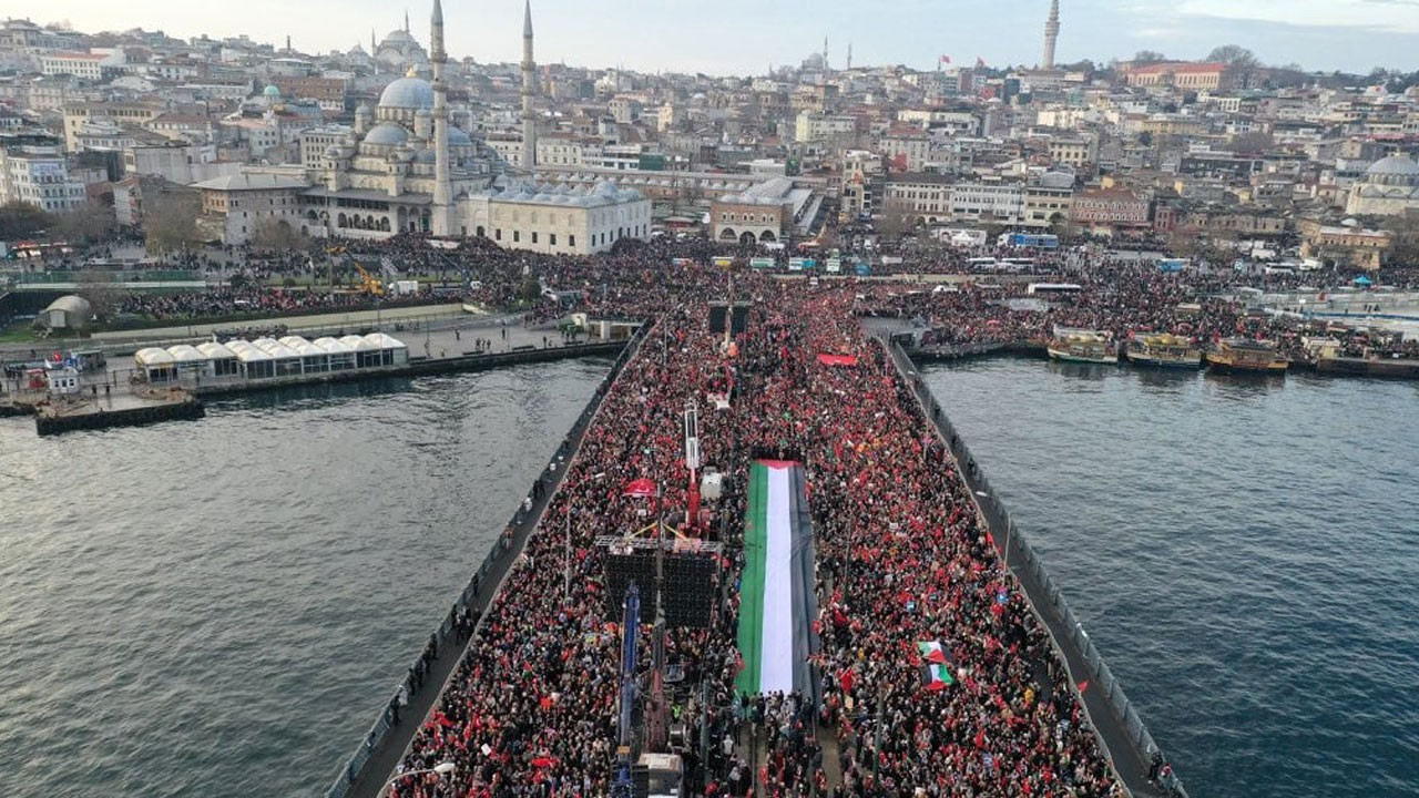 Toplumun tüm kesimlerinin sürece duyarlılık göstermesinin önemine işaret edilen açıklamada, 1 Ocak'ta Galata Köprüsü'nde yapılacak yürüyüşün, tüm dünyada yankılanacağı, Filistin halkının sesi olmayı hedefleyen bir duruş ortaya koyacağı ve kamuoyunda farkındalık oluşturmayı amaçladığı kaydedildi.