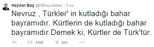 Baş, "Nevruz, Türkler'in kutladığı bahar bayramdır. Kürtlerin de kutladığı bahar bayramıdır. Demek ki, Kürtler de Türk'tür" iddiasında bulundu.