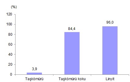 Üretilen katı yakıtların teslimatları karşılama oranı yüzde 3,9 ile en düşük taşkömüründe gerçekleşti. Bu oran taşkömürü kokunda yüzde 84,4 iken linyitte yüzde 96 olarak hesaplandı.