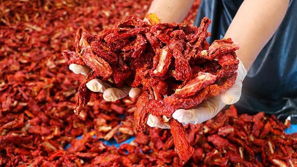 Almanya'daki fabrikada işlenen domates kuruları, ardından Avrupa'nın bir çok noktasında satışa sunuluyor.