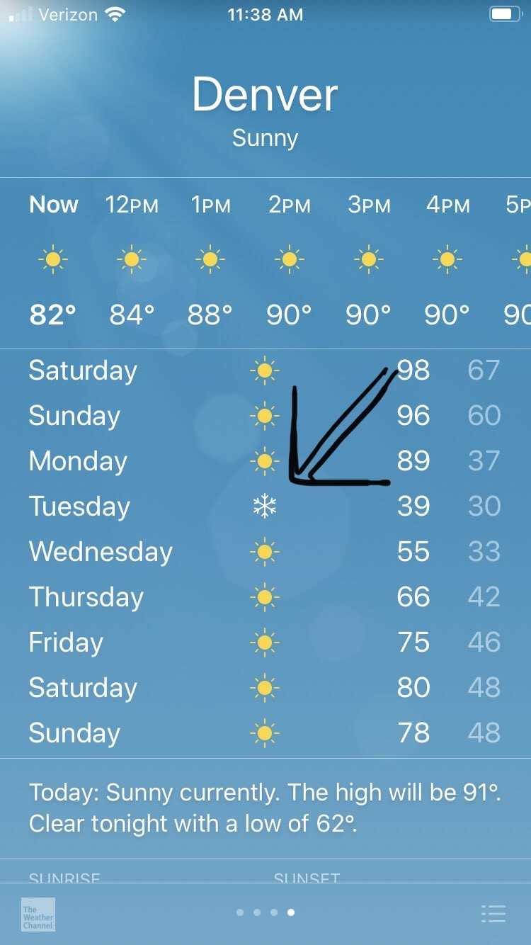Haber 7'de yer alan habere göre, ülkede açıklanan hava tahmin raporlarına göre, Denver kentinde 8 Eylül Salı günü kuvvetli bir soğuk hava dalgasının sıcaklığı 1 günde 28-30 derece düşürmesi ve kar yağışına neden olması bekleniyor. Tüm dünya bu olayı merakla beklerken, bölge halkı ise endişeyle karşılıyor.