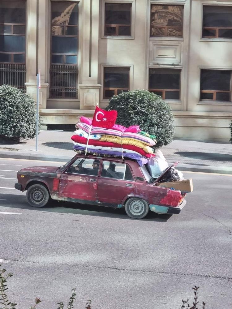 Türkiye’de meydana gelen deprem felaketinin ardından kardeş ülke Azerbaycan yaraları sarmak için elini uzatan ilk ülkelerden olmuştu. 33 yaşındaki Server Beşirli de köy halkından topladığı yorganları Türk ve Azerbaycan bayrağının dalgalandığı eski aracının tavanına yükleyerek Bakü'ye gitmişti.