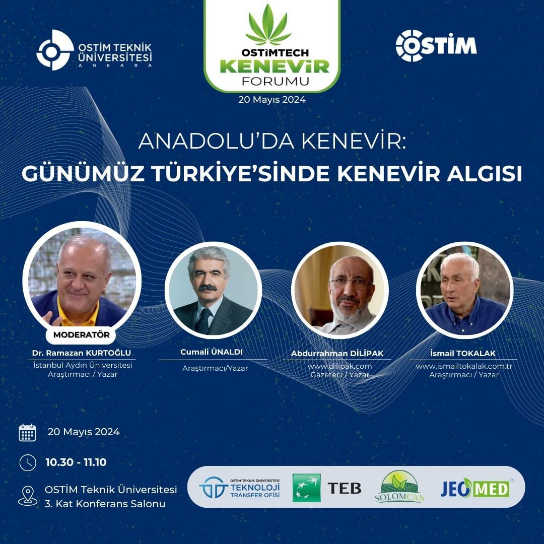 Kenevir Forumu'nda saat 10:30'da düzenlenecek oturuma ise Dr. Ramazan Kurtoğlu moderatörlük yapacak. Oturumun konuşmacıları arasında kenevir üzerine çıkışlarıyla dikkat çeken gazeteci Abdurrahman Dilipak da yer alacak.