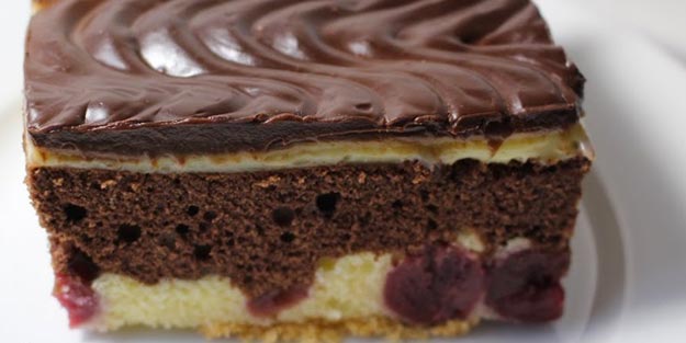 Çekirdekleri çıkartılan vişne veya kiraz taneleri hamurun üzerine dizilir ve üzerilerine çok hafif bastırılır.