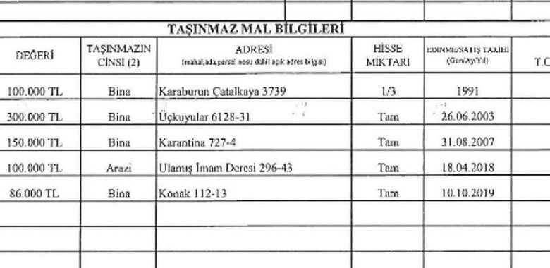 2020 senesinde resmi mal beyanını yenileyen Soyer, Seferihisar Ulamış’ta, İmam Deresi mevkiinde 296-3 nolu ada parselde bir arazisi olduğunu belirtti. Söz konusu mal beyanında bu alan “arazi” olarak belirtildi. 18 Nisan 2018 tarihinde satın alındığı kaydedilen arazinin, 100 bin TL değerinde olduğu ifade edildi.