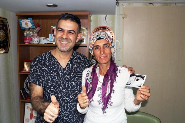 Tokat’ta ikamet eden 44 yaşındaki Zinet Eryiğit doğal yollarla hamile kalamayınca tüp bebek tedavisi ile çocuk sahibi olmayı denedi. Tokat, Sivas, Samsun gibi şehirlerde tedavi gören Eryiğit’e erken menopoz teşhisi konuldu. Kendisine tüp bebek tedavisiyle bile çocuğunun olmasının imkansız olduğu söylenen Eryiğit’e gittiği merkezlerin hiçbiri umut vermedi. En son televizyonda izlediği Kadın Doğum ve Tüp Bebek Uzmanı Doç. Dr. Hakan Çoksüer’in Diyarbakır’daki kliniğine gelen Eryiğit, Doç. Dr. Çoksüer’in uyguladığı akupunktur ve yumurta detoks tedavisinin ardından tüp bebek tedavisi olmadan, aşılama yapılmadan normal şekilde hamile kaldı. 44 yaşında hamile kalmanın sevincini yaşayan Eryiğit, kendisi gibi çocuk sahibi olmak isteyenlerin umutlarını hiçbir zaman kaybetmemesini tavsiye ediyor.