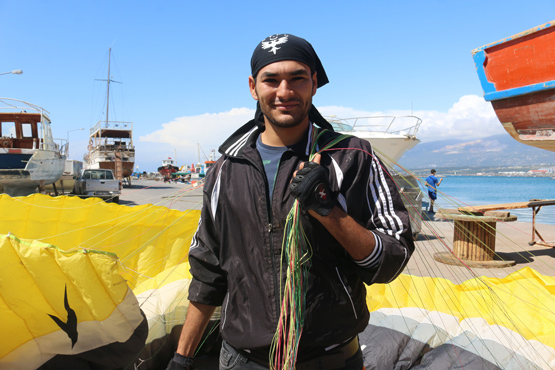 Hatay'ın İskenderun ilçesinde şiddetli rüzgarda türbülansa giren paraşütçü, balıkçı barınağında bakımı yapılan tekneye indi.