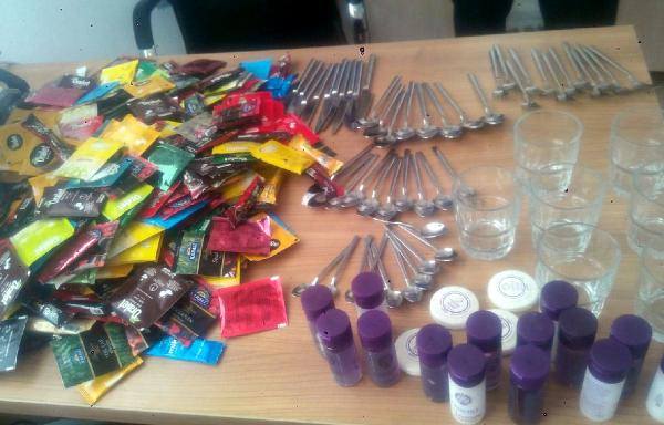 Antalya'nın Manavgat İlçesi'nde 5 yıldızlı bir otelde tatil yapan yabancı uyruklu turistin valizlerinde yapılan aramada, otelden çaldığı tespit edilen bir çanta dolusu elma ve portakal, bitki çayı, meyve suları, şampuan, tuvalet kağıdı ve havlu bulundu. Başka bir turistin çantasında ise çatal, bıçak, kaşık seti çıktı.