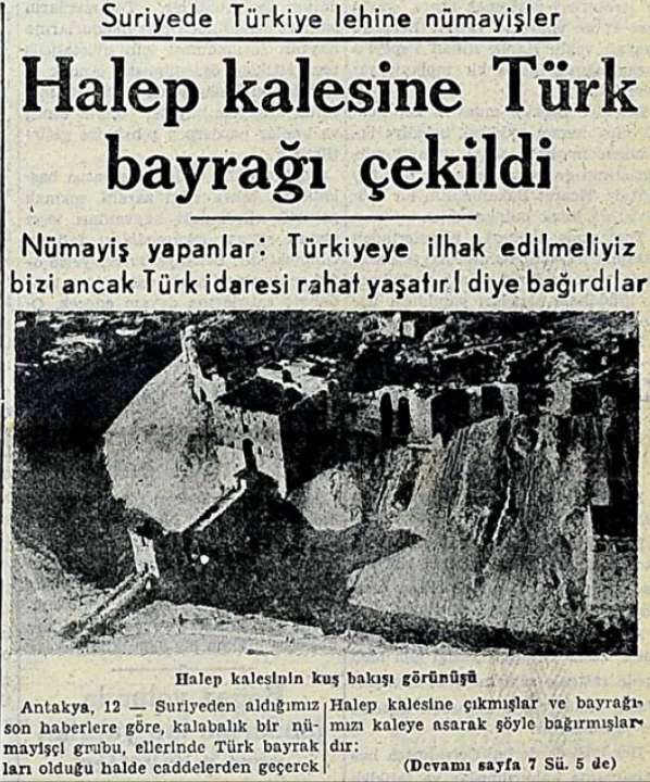 Aralık 1948'de yayımlanan bir mecmuada “Halep kalesine Türk bayrağı çekildi” ifadeleri yer almıştı.