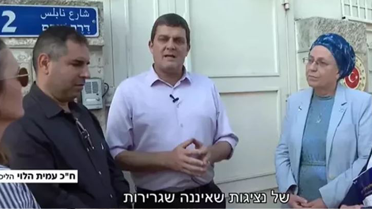 Terör devleti İsrail’in İşgal Bakanı Orit Strock aralarında Likud Milletvekili Amit Halevi'nin de yer aldığı bir grupla, Türkiye'nin işgal altındaki Doğu Kudüs'te bulunan Filistin nezdindeki Kudüs Başkonsolosluğu önünde provokatif açıklamalar yaptı. ‘Türk görmek istemeyen’ terörist, Türkiye’nin Başkonsolosluğunun İsrail’in egemenlik haklarını zedelediğin iddia etti.