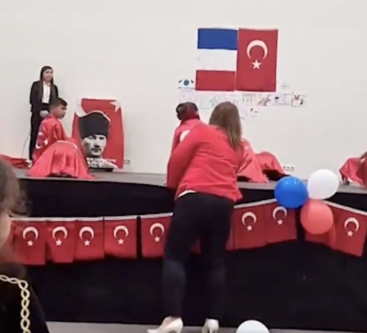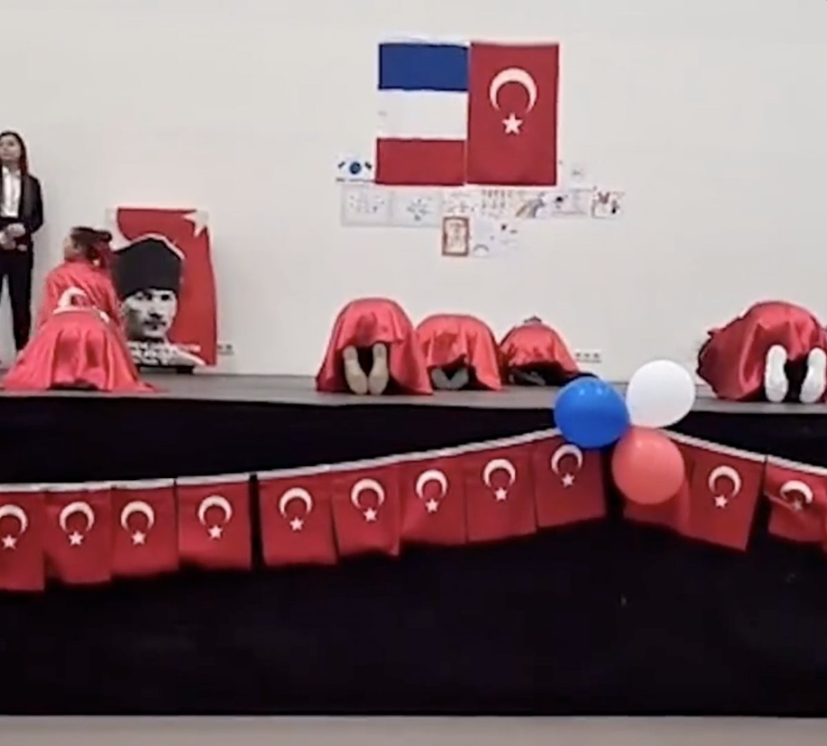 Fransa'daki bir Türk okulunda yapılan skandal 23 Nisan kutlaması, sosyal medyada tepkiye neden oldu.