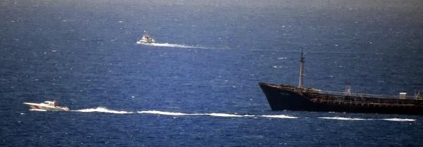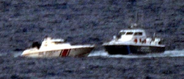 Türk Sahil Güvenlik botu akaryakıt tankeri ile uzun süre yan yana seyretti. Bu sırada Yunan botunun uluslararası sulara çekildiği görüldü.