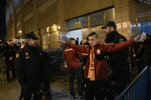 İspanya polisi, Avrupa'da ve Fransa'da IŞİD saldırıları nedeniyle artan güvenlik önlemlerini ileriye taşıdı. Polis, Athletico Madrid-Galatasaray maçı öncesi Türk taraftarları üzerlerini soyarak aradı.