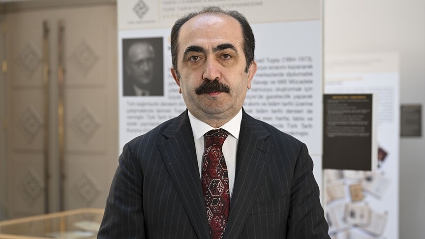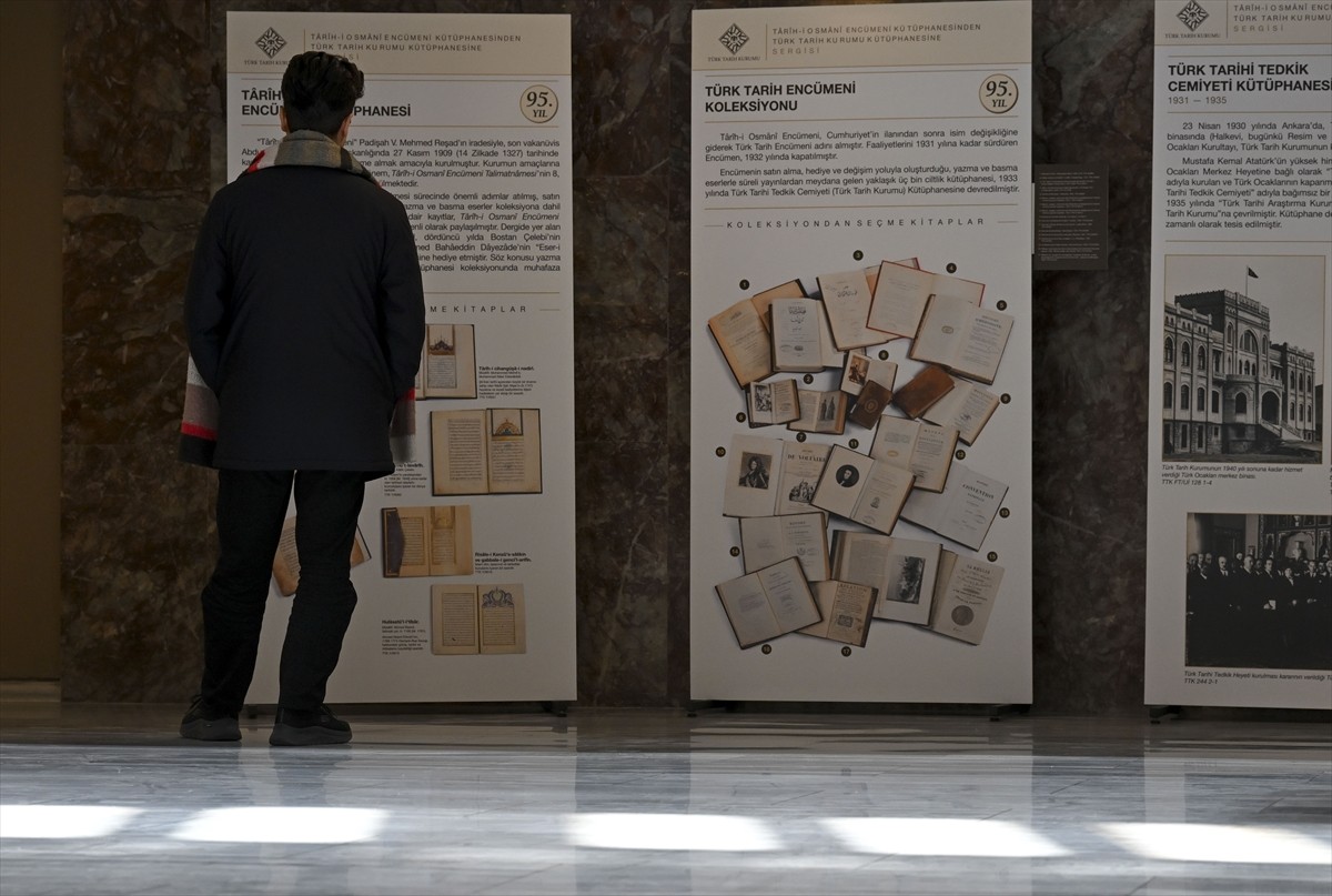 "Tarih-i Osmani Encümeni, Osmanlı döneminde kurulmuş bir cemiyet. Yaklaşık 3 bin ciltten oluşan kütüphane, Cumhuriyet'in ilanıyla Türk Tarih Kurumu Kütüphanesine naklediliyor. Kütüphanenin kuruluş aşamasındaki en önemli koleksiyondur. Sergide, daha sonra bağışlar ve satın almalarla kurum kütüphanemizin büyüdüğünü de anlatıyoruz. Önemli bağışçılarımızın koleksiyonlarından örnekler koyduk, tanıttık. Bugün itibarıyla kütüphanemizde kitap, dergi, süreli yayın, yabancı dillerdeki elektronik yayın, fotoğraf, harita olmak üzere yaklaşık 270 bin materyal var. Kütüphanemizin en önemli özelliği bir ihtisas kütüphanesi olması. Bu yönüyle de Türkiye'deki ve dünyadaki tüm araştırmacılara hizmet eden 95 yıllık tarihi olan bir kütüphaneye sahibiz."
