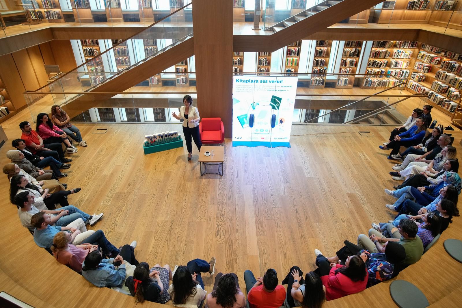 Engelliler Haftası kapsamında ayrıca erişilebilir kaynaklara dikkat çekmek üzere Atatürk Kültür Merkezi Kütüphane’de “Kitaplara Ses Ver” atölyesi de düzenlendi. Görme engelliler için gönüllü kitap seslendirmek isteyen Türk Telekom çalışanlarına özel düzenlenen atölyede, tiyatro oyuncusu, sunucu ve yazar Açelya Akkoyun tarafından, daha etkili kitap okuyabilmek amacıyla tonlama, artikülasyon, diyafram kullanımı gibi konularda bilgiler aktarıldı. Türk Telekom, yürüttüğü projelerle engelli bireylerin toplumsal hayata eşit katılımını ve bilgiye erişimini desteklerken, çalışanlarının da bu konudaki farkındalıklarının artmasına katkı sundu.