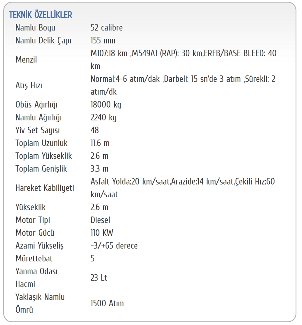 - Özgün tasarımıyla Türkiye'nin ilk obüsü olma özelliği taşıyan Panter ( T-155 Çekili Obüs), topçu birliklerinin en önemli silahları arasında yer alıyor.