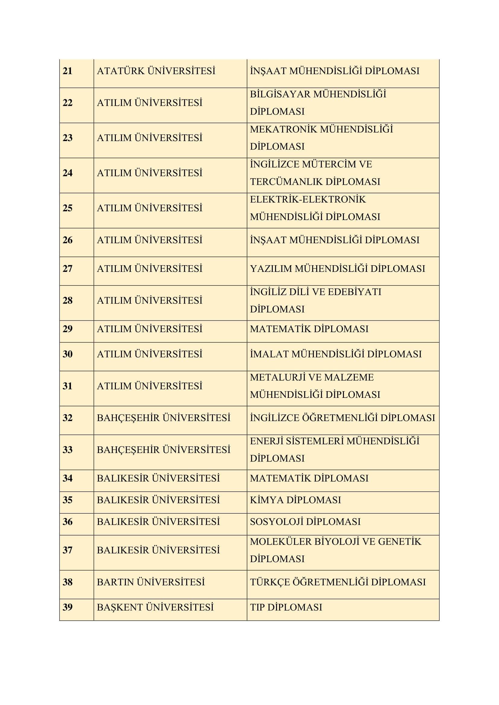 YÖK'ten edinilen bilgiye göre, TYÇ Kurulu, 21 Aralık 2021'de ilk kez 39 üniversitedeki 129 lisans programının yeterliliklerinin TYÇ'ye yerleştirilmesine karar verdi.