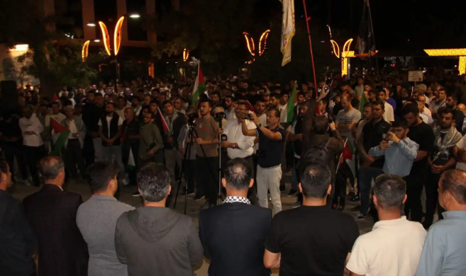 Diyarbakır'ın merkez Kayapınar ilçesindeki alışveriş merkezi önünde bazı sivil toplum kuruluşlarının öncülüğünde bir araya gelen katılımcılar, İsrail karşıtı sloganlar attı, Filistin bayrakları taşıdı, tekbir getirdi.