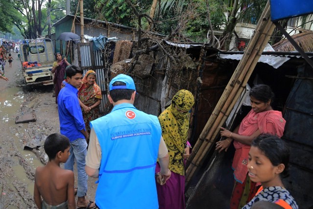 Bangladeş’in-Teknaf şehrinde giden Diyanet Vakfı görevlileri burada 500 aileye gıda dağıtımı yapıp, akşam da 200 kişilik iftar yemeği verdi.