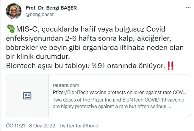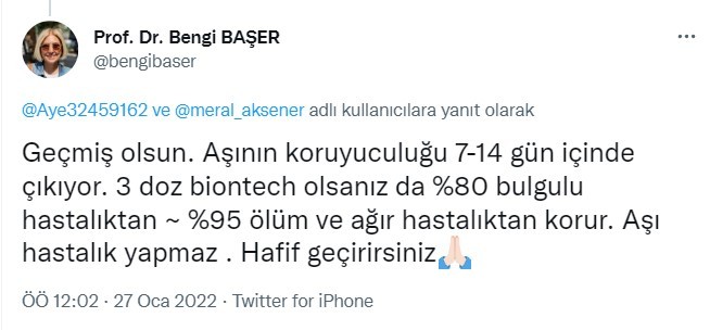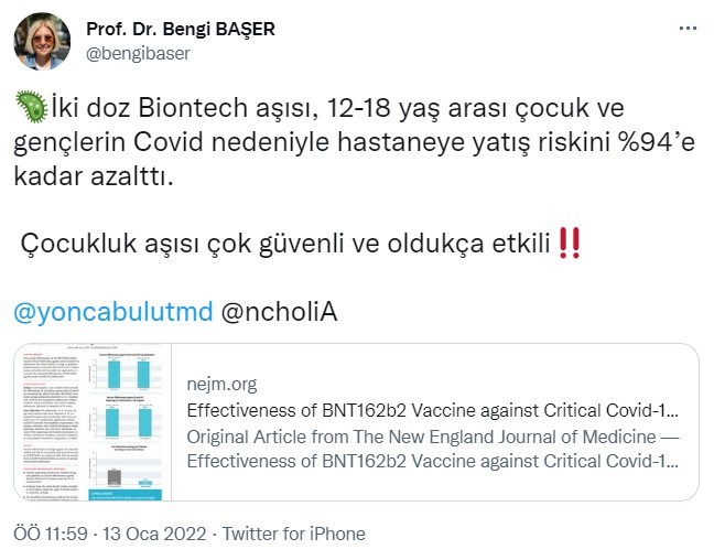 "Tam aşılı olanlar hastalığı çok hafif geçiriyor. Hasta grubunun ciddi bir kesiminin hiç aşılanmamış olduğunu görüyoruz. Aşılanmamış grupta hastaneye, yoğun bakıma, yatış oranının yüksek olduğunu hiç aklımızdan çıkarmamamız lazım. Mevcut aşılar Omicron dahil olmak üzere COVID-19'a karşı yüzde 99 ölümü, yüzde 90 da hastaneye yatışı önlüyor."