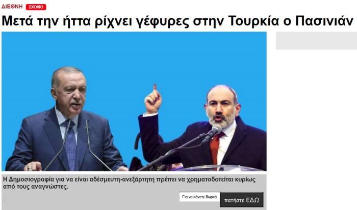 Paşinyan'ın Dağlık Karabağ savaşında Türkiye'nin Azerbaycan'a verdiği desteği unuttuğunu ifade eden Yunan basını, Ermenistan'ın kırk yıl sonra diplomatik ilişkileri yeniden kurmaya çalıştığını belirtti.
