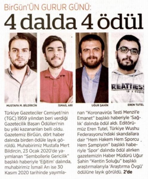 TGC'nin ödül tiyatrosunda Birgün'den Mustafa Mert Bildircin, İsmail Arı, Eren Tutel, Uğur Şahin, Cumhuriyet'ten ise Işıl Özgentürk, İklim Öngel, Zehra Özdilek ve Kurtuluş Arı'ya ödül verildi.