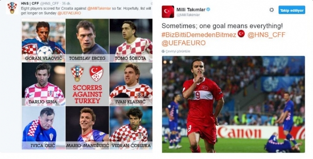 EURO 2016 D Grubu'ndaki rakibimiz Hırvatistan ile Türkiye arasındaki tarihi maç öncesinde iki ülke arasındaki ilk kapışma sosyal medyada oldu.