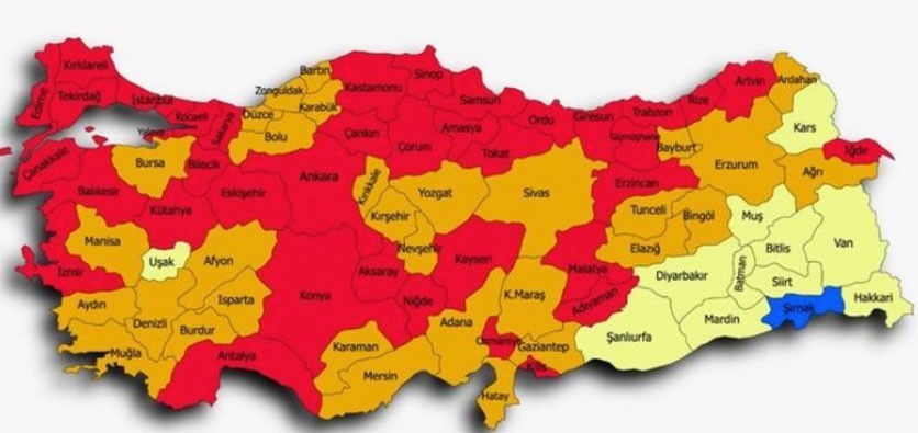 Türkiye risk haritası | Hangi ilin rengi kırmızı, hangi il turuncu, hangi il sarı renkli, hangi il mavi oldu?