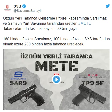 Bu kapsamda, Cumhurbaşkanlığı Savunma Sanayii Başkanlığı ile sözleşme imzalayan Samsun Yurt Savunma Sanayi ve Ticaret AŞ "TP9 SF Mete", Sarsılmaz Silah Sanayi AŞ ise "SAR9 Mete" tabancalarını üretiyor.