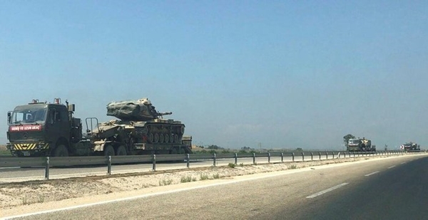Suriye sınırındaki birliklere takviye amaçlı gönderilen tank ve zırhlı personel taşıyıcılar Hatay'a ulaştı. Türk Silahlı Kuvvetleri (TSK) tarafından gönderilen tank ve zırhlı personel taşıyıcıların bulunduğu konvoy, Reyhanlı ilçesine geldi.