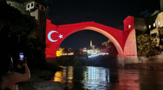 A Milli Takım'ın Çekya'yı 2-1 mağlup ettiği maçın ardından kardeş ülke Bosna Hersek'te tarihi Mostar Köprüsü'ne Türk bayrağı yansıtıldı. Görüntüler sosyal medyada büyük beğeni topladı.