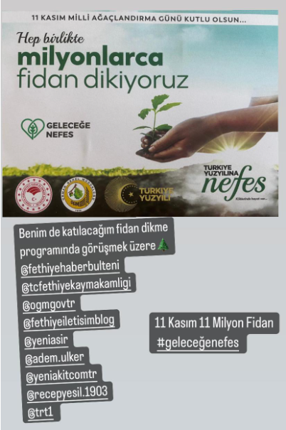 Kirişci, etkinlikler öncesinde yazılı ve görsel medya kuruluşlarına, sosyal medya ile açık hava reklam mecralarına ilanlar verileceğini, ağaçlandırma faaliyetleriyle ilgili kamuoyunda farkındalık oluşturulacağını dile getirdi.