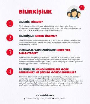 Adalet Bakanlığı tarafından bilirkişilerin akreditasyonunun sağlanması ve uzmanlık alanlarına göre bölge bilirkişi listelerine kabullerinin ve listelerden görevlendirilmelerinin sağlanması amacıyla bilirkişilik alanında ilk kez, 65 Temel Uzmanlık, 737 Alt Uzmanlık Alanı oluşturulmuştur. Türkiye genelinde, spor bilimlerinden sanat koleksiyonlarına, kentsel dönüşümden biyolejiye, bu uzmanlık alanlarında toplam 48.453 bilirkişi, adil süreçlerin hız ve güvenilirliğini artırmak için çalışıyor."