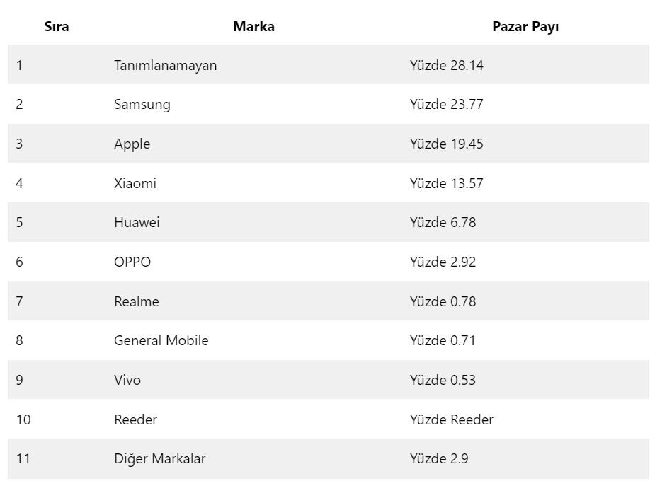 Statcounter, dünya geneli bir yana Türkiye’deki akıllı telefon pazarı için de veriler yayımladı. Ancak bu liste oldukça dikkat çekti. Zira rapora göre veriler toplandığı sırada ülkemizdeki telefonların yüzde 28.14‘ünün markası tanımlanamadı.