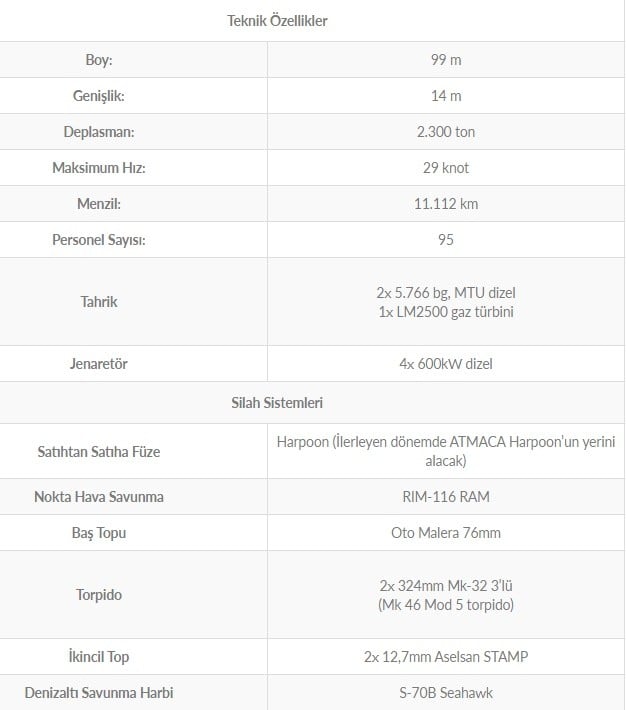 - Dalmış tehditlere karşı su altı ortam gürültüsünü azaltma ve geminin manyetik izini azaltıcı degaussing sistemi