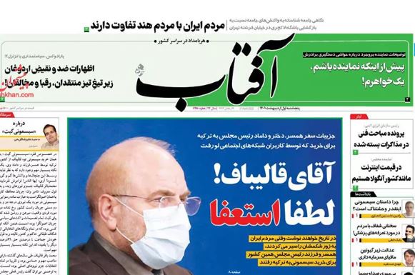 İran Meclis Başkanı Muhammed Bakır Galibaf'ın ailesinin Türkiye ziyaretini İran medyası manşetlerine taşıdı. Reformist basın, aktivistler ve sosyal medya hesaplarından İranlılar, Meclis Başkanı'na özür ve istifa çağrısı yaptı.
