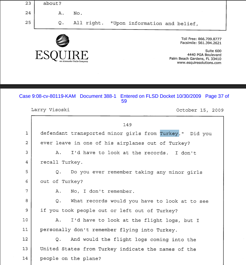 ABD Adalet Bakanlığı tarafından yayınlanan Epstein dosyalarında, milyarder sapığın sır küpü olarak bilinen ve yaklaşık otuz yıl boyunca özel pilotluğunu yapan Larry Visoski'nin savcılık ifadeleri de yer aldı. Savcının Visoski'ye Türkiye hakkında sorduğu sorular dikkat çekerken, Visoski'nin verdiği son cevap tüyler ürpertti.